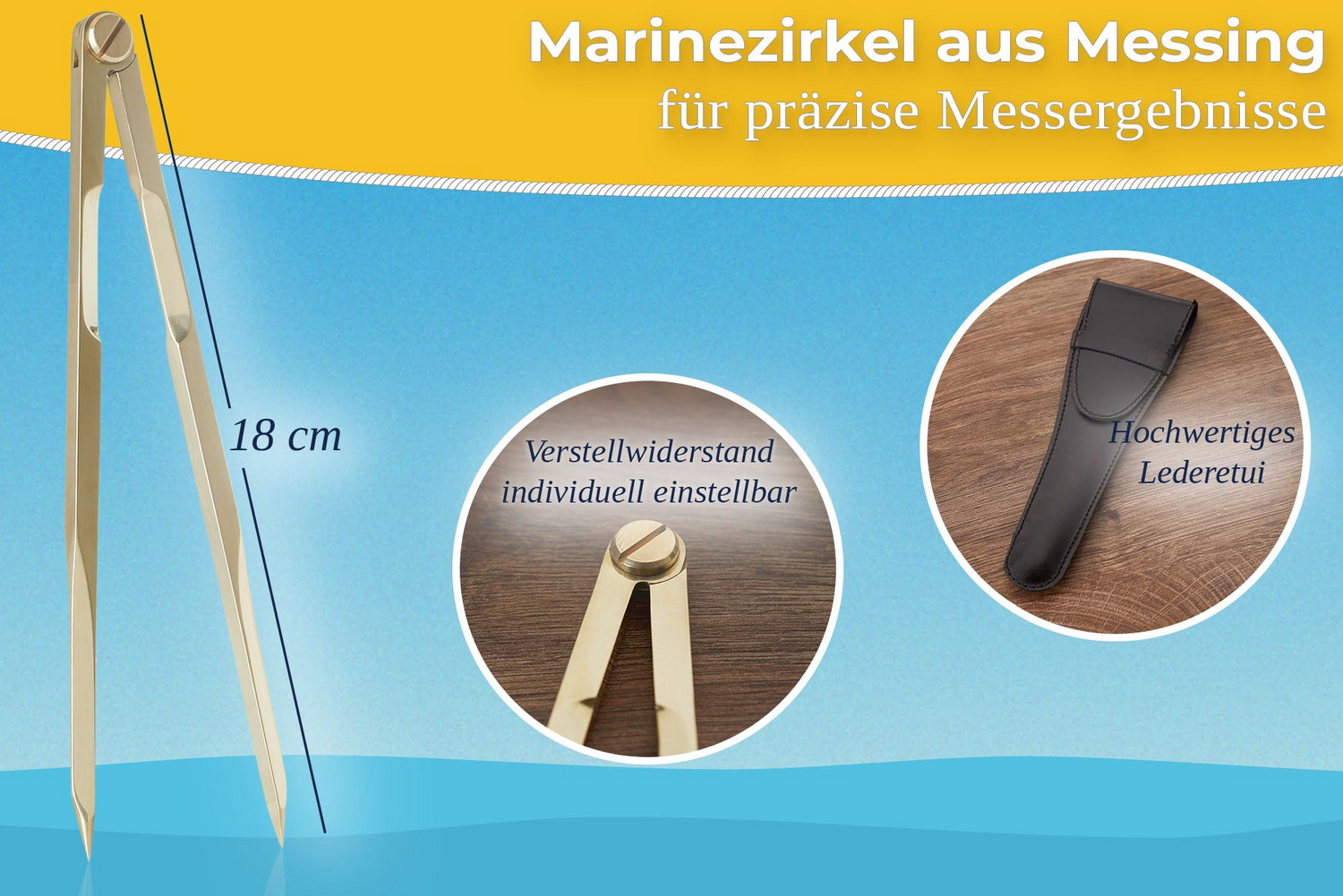 🚤 MESSINGZIRKEL- 100% stabiler Messingzirkel mit einer Schenkellänge von 18 cm für genaue Messergebnisse. Außerdem ist der Verstellwiderstand des Navigationszirkel individuell auf Sie einstellbar